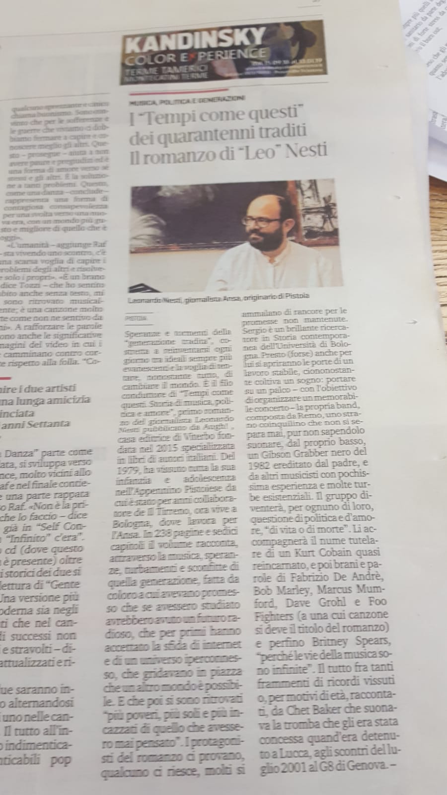 Leonardo Nesti è nato in Toscana nel 1979. Vive a Bologna dove lavora come giornalista per l’Ansa. Tempi come questi. Storia di musica, politica e amore è il suo primo romanzo.